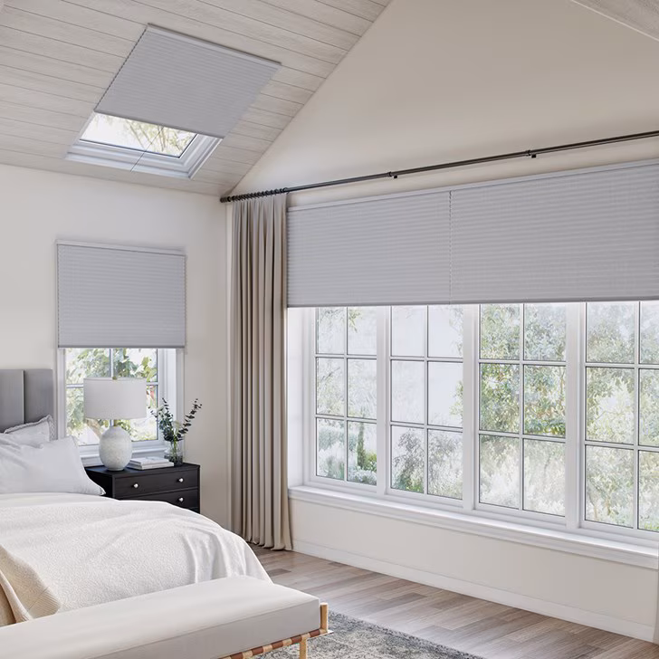 Ideal for residential and commercial skylights, cellular shades reduce heat gain during the summer and minimize heat loss in the winter. Available in both light-filtering and blackout options, they provide precise control over natural light, glare, and privacy—making them perfect for bedrooms, living spaces, bathrooms, and sun-exposed areas.